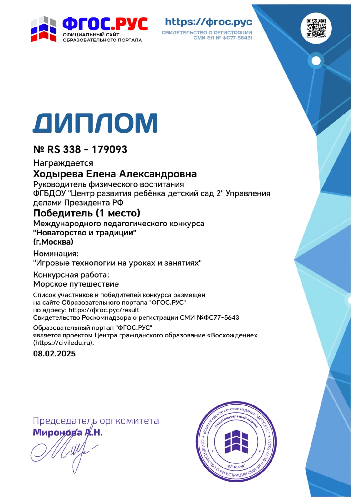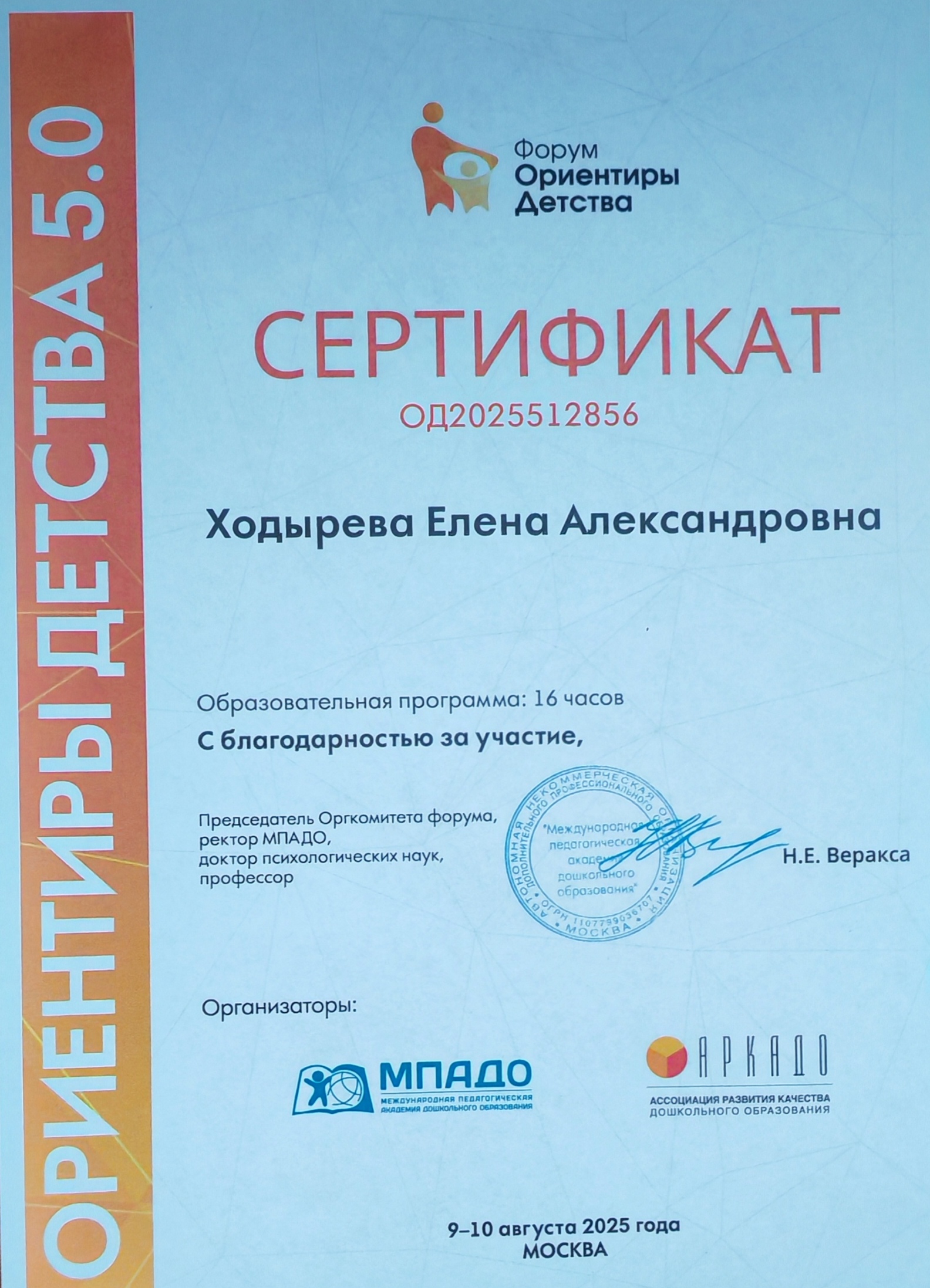 Сертификат "Ориентиры детства 5.0"