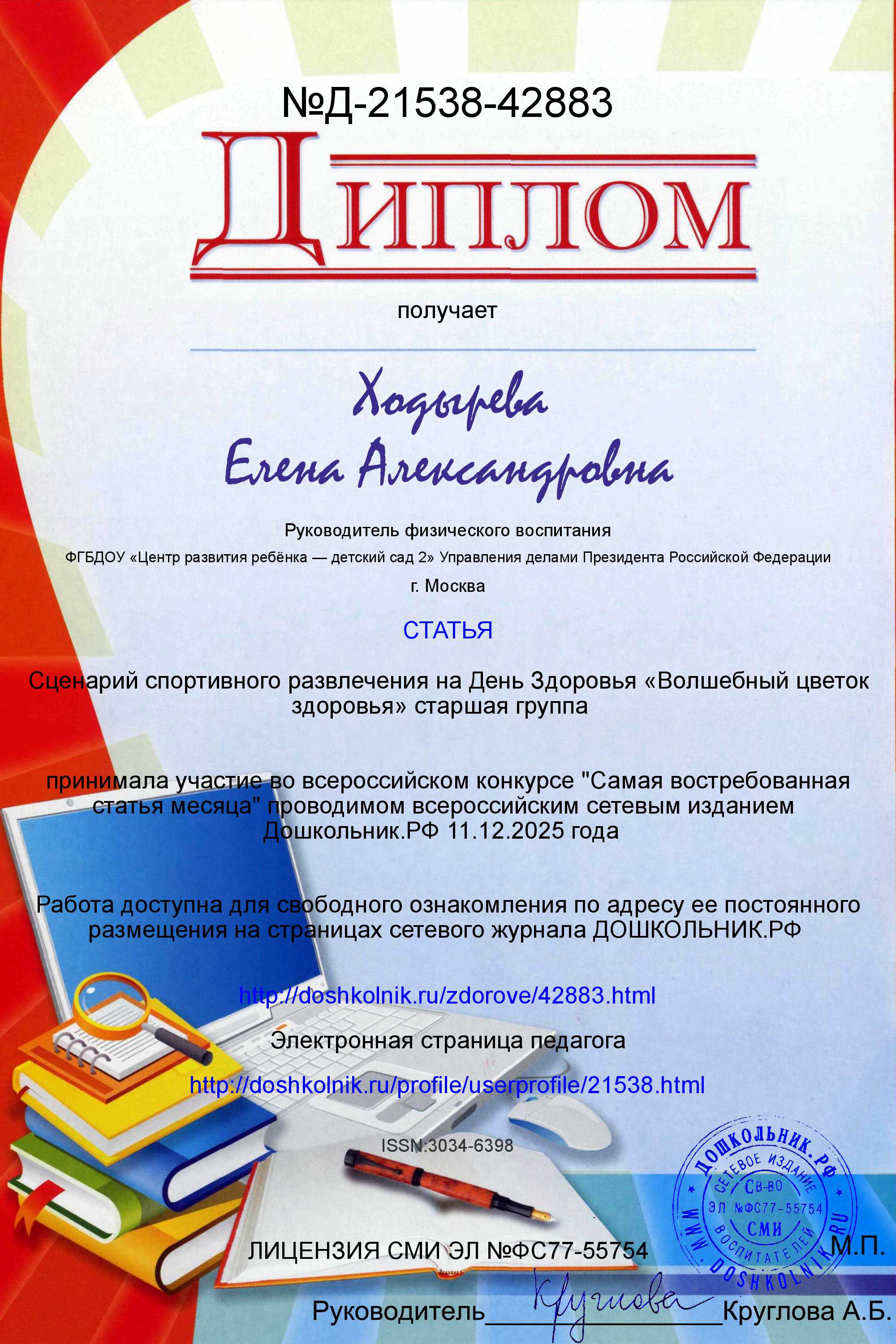 Диплом "Самая востребованная статья месяца" 11.12.2025