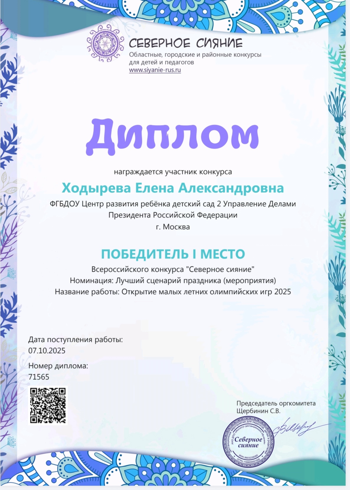 Диплом "Новаторство и традиции"