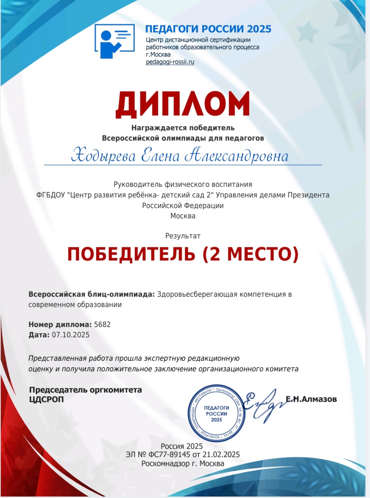 Всероссийская блиц-олимпиада: Физическое развитие дошкольников в контексте ФГОС. Организация работы.